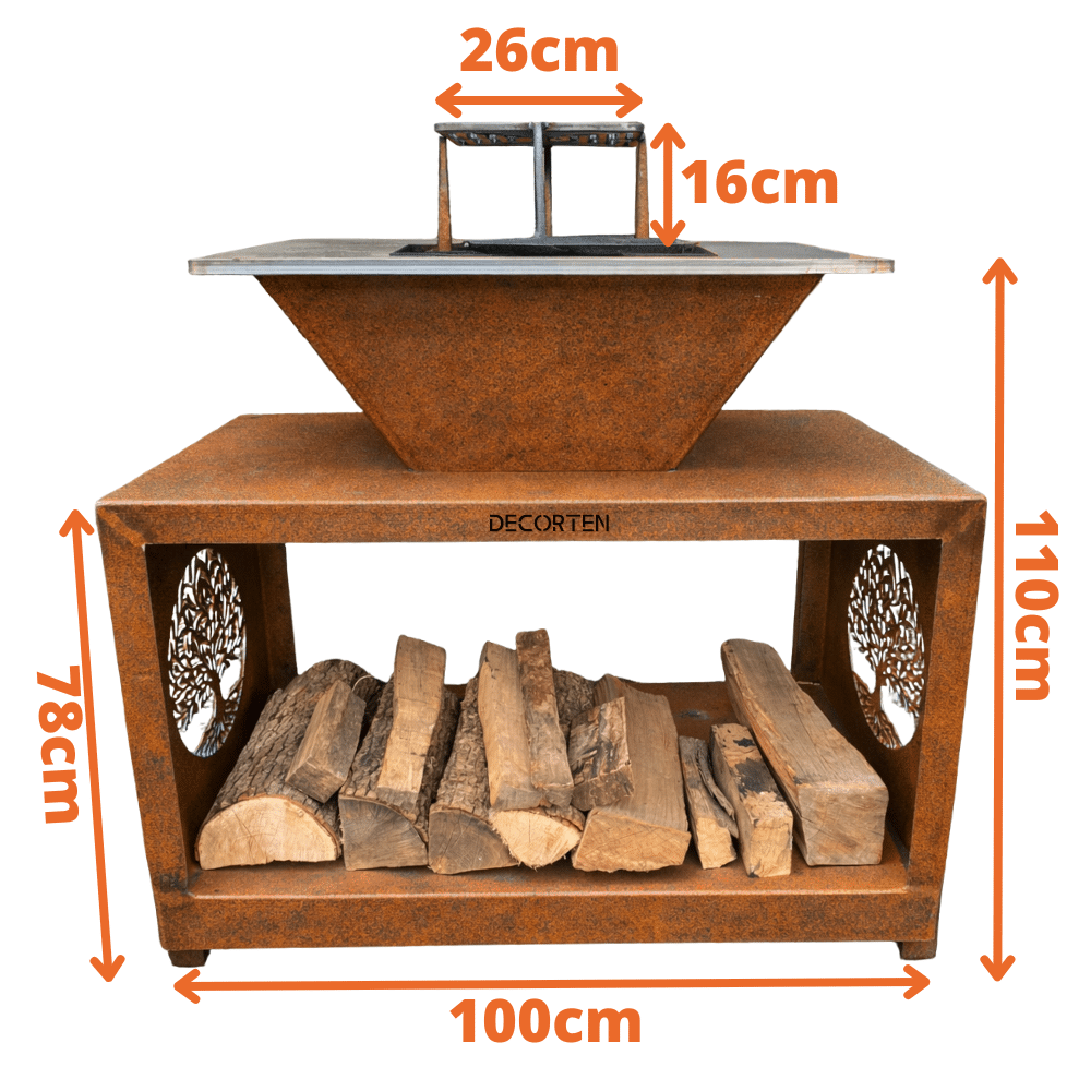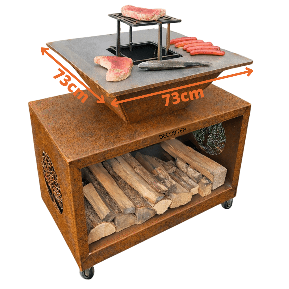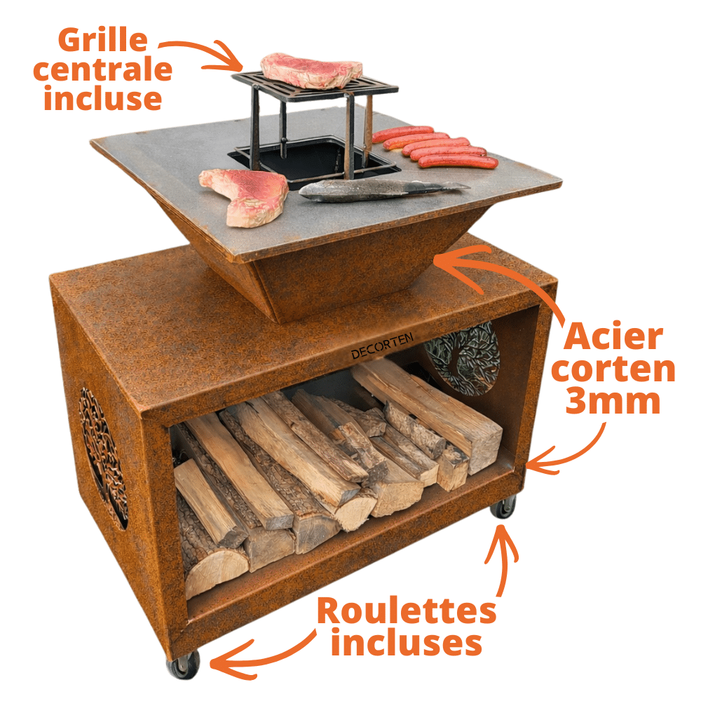 - Matériaux solides : structure en acier corten 3 mm et plaque de cuisson 10 mm renforcée.